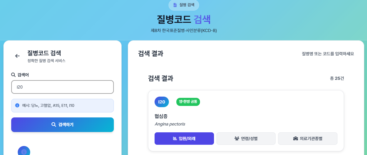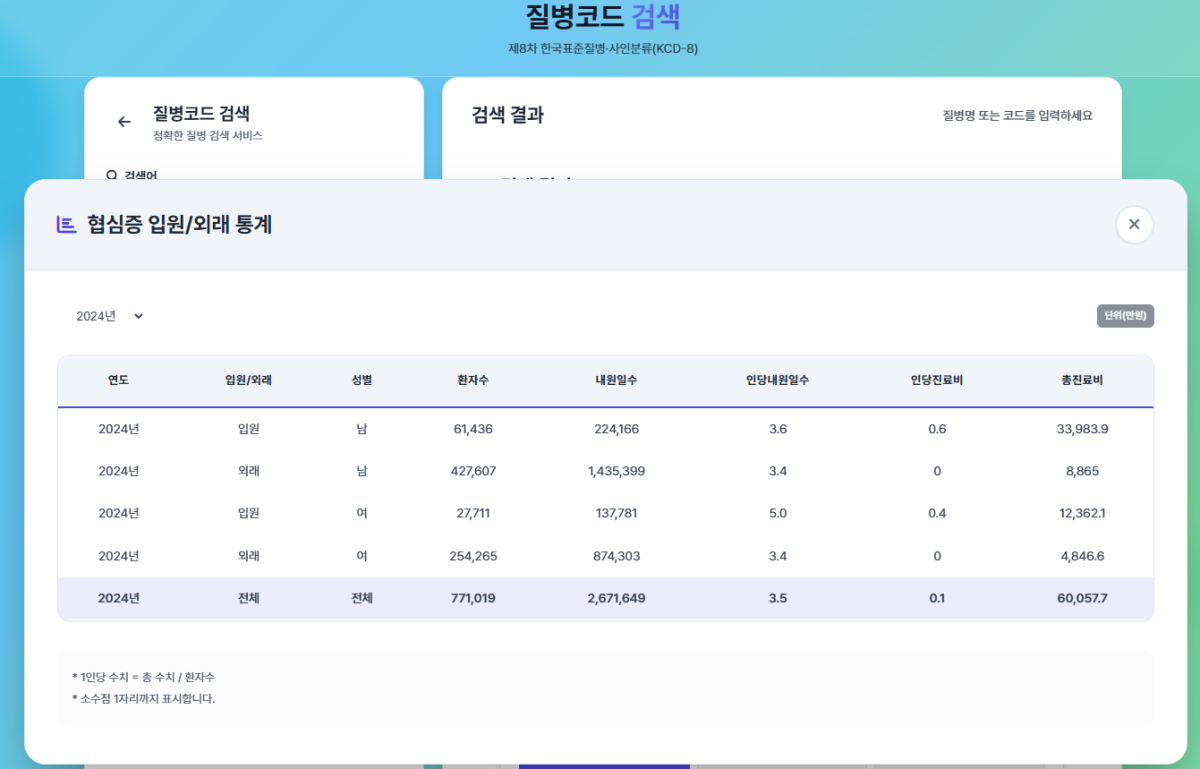 - 질병코드 검색후 통계자료 오류발생 및 오류시 사이트 전체 지연문제 발생