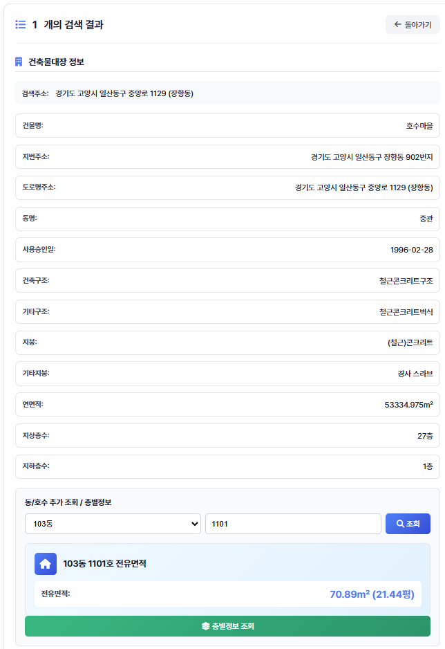 전용면적도 주소만으로 바로 알수 있어서 정확하게 화재보험 설계가 가능