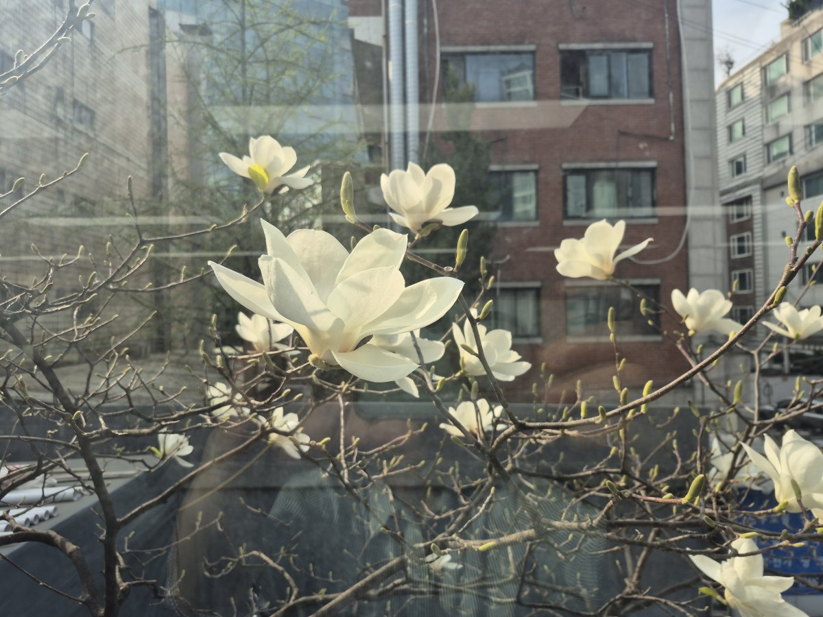 목련꽃과 신선칼국수라 먹기도 좋고 보기도 좋네요~