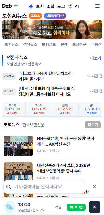 - 각 카테고리별 기사 볼경우에 화면이동 제어로 바로바로 보험회사, 일반보험, 보험사고를 볼수있도록 개선