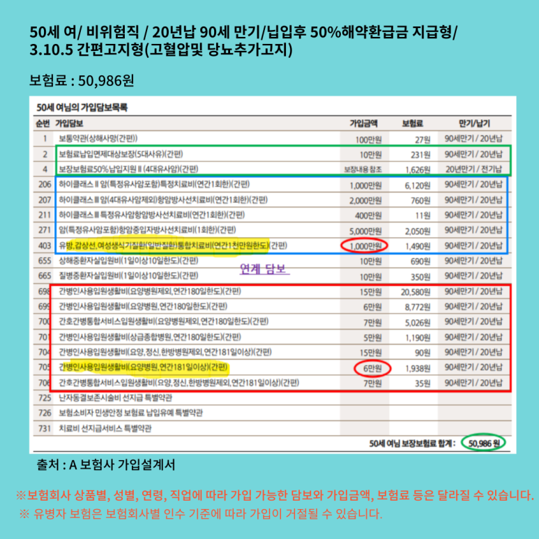 설계 조건 : 비위험직/ 20년 납 90세 만기/ 납입 후 해약환급금 50% / 3.10.5 간편고지(고혈압 및 당뇨추가고지)