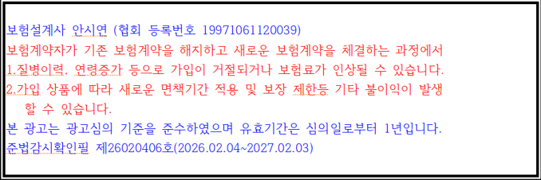 (상기 내용은 모집종사자 개인의 의견이며, 계약 체결에 따른 이익 또는 손실은 보험계약자 및 피보험자에게 귀속됩니다.)