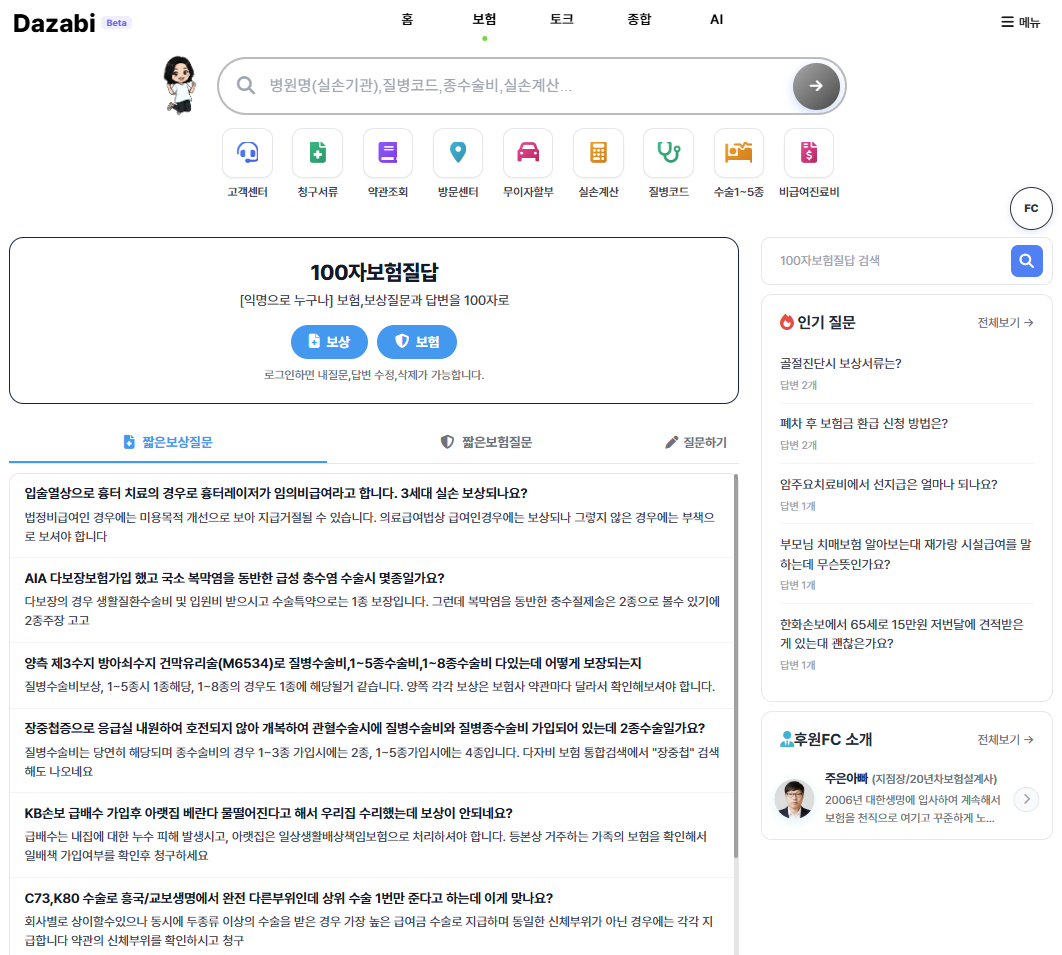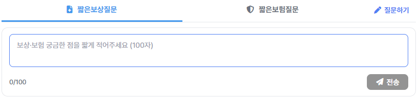 ※ 배너의 보상/보험 버튼을 클릭하시면 다크화면에 100자보험질문에 대한 전체보기 서비스로 연결됩니다.