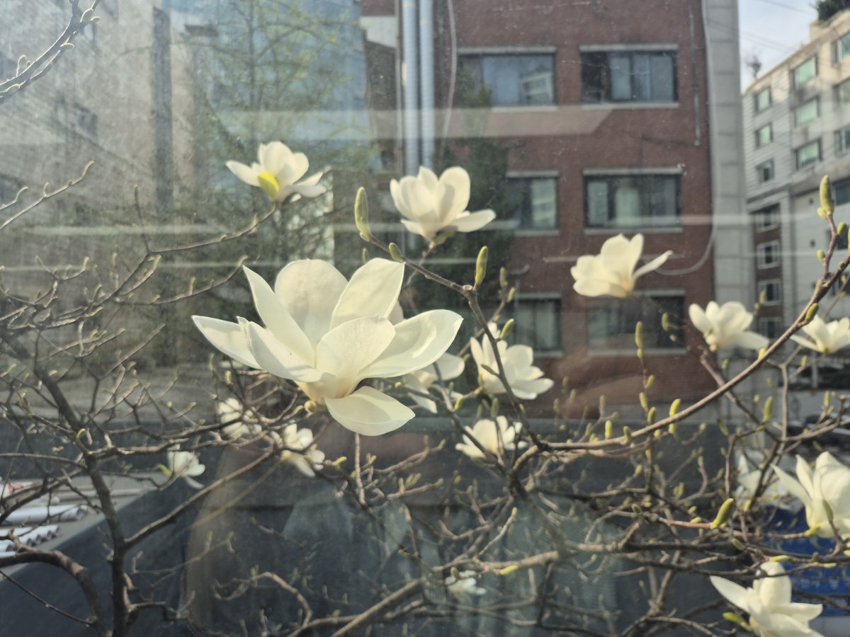 목련꽃과 신선칼국수라 먹기도 좋고 보기도 좋네요~