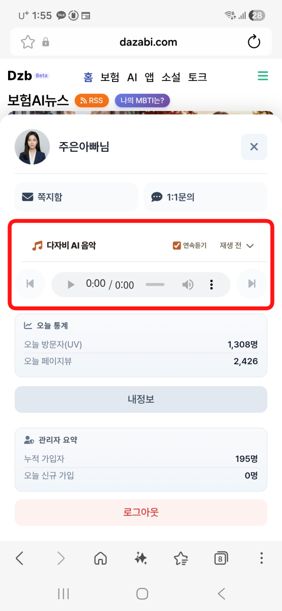 다자비AI음악듣기 위치를 하단바에서 볼수있도록 위치가 변경되었습니다. (PC는 동일)