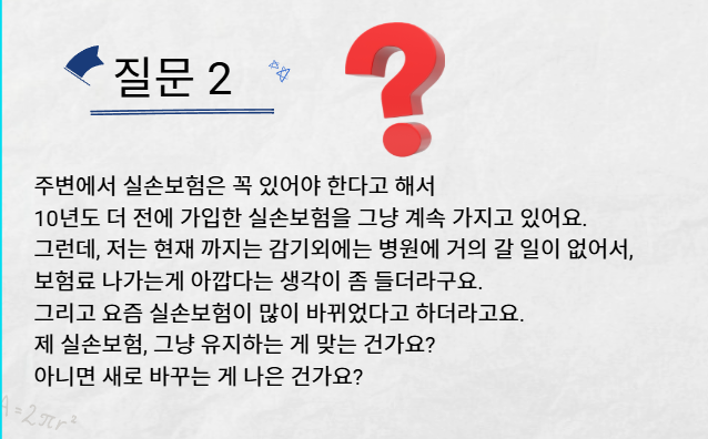 예전에 가입한 보험인데, 지금은 의료 환경, 본인의 생활환경이 변하면서 지금은 상대적 효용성이 떨어지는 보험이 있는지? 점검이 필요합니다.