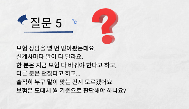 오랫동안 보험설계사로 일하면서 보험상담 고객들이 자주 하시는 질문을 정리해 보았습니다.