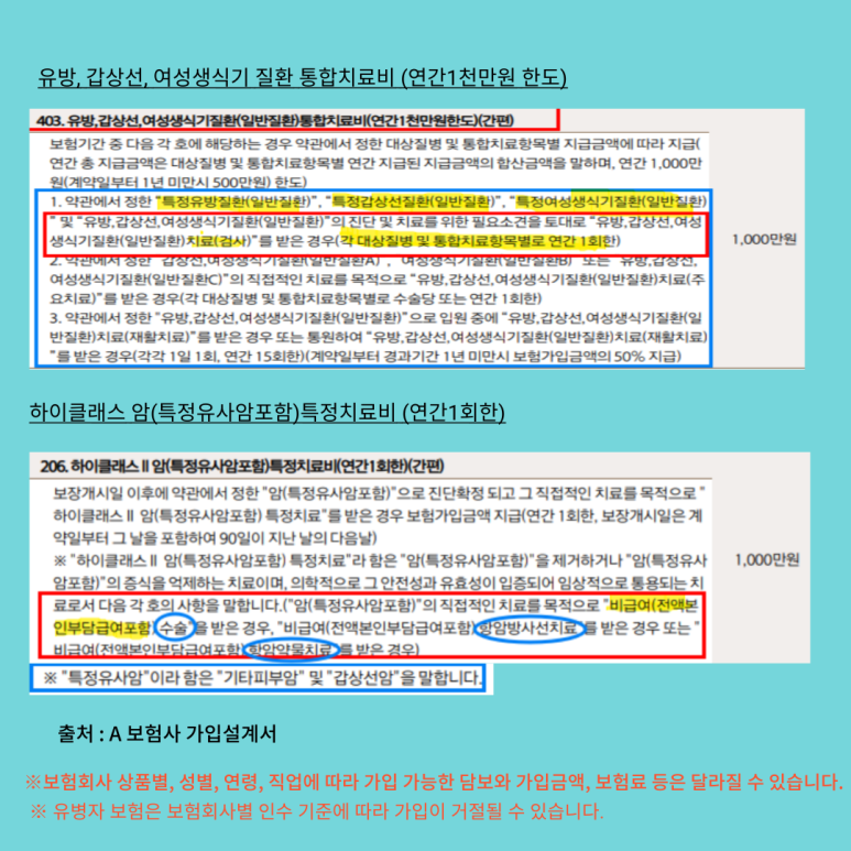 🔸유방, 갑상선, 여성생식기 질환 통합치료비 ------- 1,000만 원